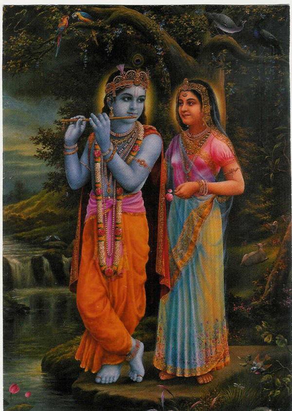 Krishna, la vida de los vrajavasis, vivió en Mathura por un tiempo, y luego se mudó a Dvaraka, donde continuó con sus maravillosos pasatiempos. Durante todos esos años, Radha y los vrajavasis sintieron una separación intensa ,casi insoportable, de los pies de loto de Krishna. El encuentro en Kuruksetra Cuando Nanda Maharaja, Srimati Radharani y los otros residentes de Vrindavan se enteraron que Krishna tenía planes de visitar Kuruksetra, que no quedaba muy lejos, inmediatamente decidieron ir. El encuentro tan esperado entre Krishna y estos devotos se llevó a cabo en Kuruksetra durante un eclipse solar, cuando los residentes de Dvaraka llegaron para bañarse en los lagos sagrados de Kuruksetra.Los residentes de Dvaraka, miembros de la dinastía Yadu, establecieron el campamento de la realeza, y cerca de ahí los pastores vrajavasis de vacas estacionaron sus sencillos carruajes. Krishna y su hermano Balarama, su hermana Subhadra, y los residentes de Dvaraka y Vrindavan, tales como Vasudeva, Devaki, Nanda Maharaja, Yasoda Mayi, madre Rohini, Radharani, las gopis, se reunieron y compartieron juntos la compañía de uno y otro.Los vrajavasis y las gopis estaban muy complacidos de encontrarse con Krishna, el Señor de sus vidas. Sin embargo, sintieron que reunirse con Él en Kuruksetra era diferente de reunirse con Él en Vrindavana. Estaban acostumbrados a verlo como a un simple pastorcillo de vacas, no como a un príncipe de la realeza. No estaban satisfechos con el ambiente de Kuruksetra. Querían que Krishna regresara a Vrindavan.Cuando Radharani y Krishna se encontraron, Radharani, siendo incapaz de ocultar Su deseo, expreso Sus sentimientos de la siguiente manera (Caitanya-caritamrta, Madhya-lila 13.126-131):”Tú eres el mismo Krishna, y Yo soy la misma Radharani. Volvemos a vernos, del mismo modo que al comienzo de Nuestras vidas. Aunque los dos somos los mismos, Mi mente sigue atraída a Vrndavana-dhama. Deseo que Tú, por favor, pises de nuevo Vrndavana con Tus pies de loto. En Kuruksetra hay demasiada gente, con sus elefantes, caballos y ruidosas cuadrigas.