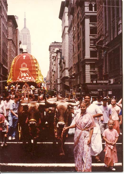 Sri Caitanya Mahaprabhu pasó sus últimos años en Jaganatha Puri, Orissa, inmerso en el amor a Dios, y absorto en maravillosos pasatiempos con Sus asociados íntimos y con la Deidad de Krishna en Puri, conocida como Jagannatha, “el Señor del universo”. Esto fue aproximadamente hace quinientos años.Uno de los pasatiempos más atractivos del Señor Caitanya era su participación en el Ratha-yatra anual, el Festival de los carruajes, en el cual el Señor Jagannatha desfila por la avenida principal de Puri en una carroza enorme y decorada que es tirada por los devotos.